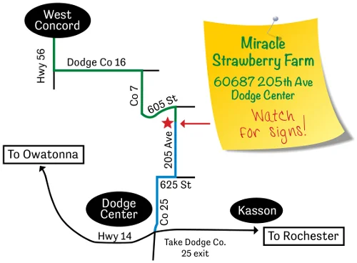 South on Hwy 56, Left on County 16, Right on County 7, Left of 605th ST, Right on 205 Ave